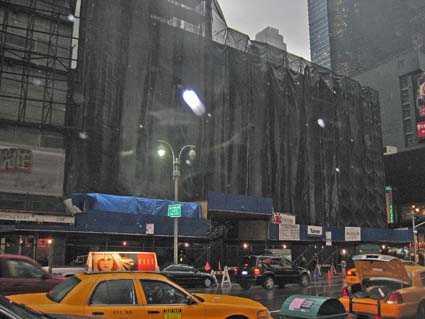 I was startled to realize that I’d walked by 1600 Broadway dozens of times without realizing I was outside the building where some of the greatest cartoons of all time were made. But now, I couldn’t quite tell if it was still there–which was not a good sign. There was a structure, shrouded in black fabric, but it wasn’t clear whether it was the old building or the start of a new one: