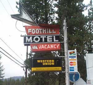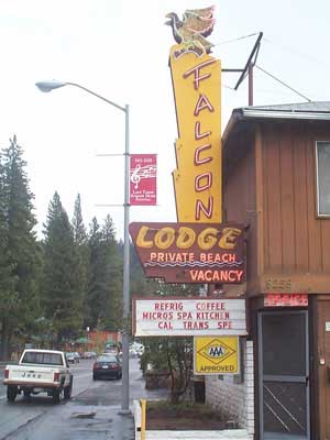 Well, here I am in Incline Village, Nevada, on the beautiful shores of Lake Tahoe (which I had no idea was so glorious). The weather's so-so, but I've taken a few snapshots of local motels and other points of interest -- some of which are actually over the border in Brockway, California. All pictures were taken with a Kodak Digital Science DC220 digital camera about two hours ago. (What fun to be able to put them on the Internet almost instantly; my last round of snapshots were done with a 35mm camera, processed, then scanned one-by-one.)